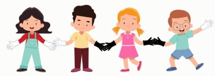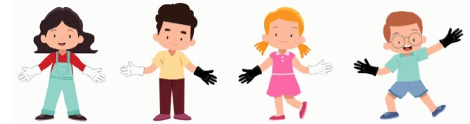 - Los estudiantes solo pueden tomarse de las manos si el color de los guantes en sus manos coincide.